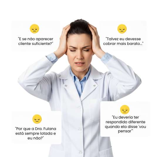 Nenhuma evolução. Leads chegam mas você trava em “Está caro”. Muita frustração ao ver seu concorrente sempre lotado enquanto você improvisa cada conversa e perde 7 em cada 10 oportunidades.